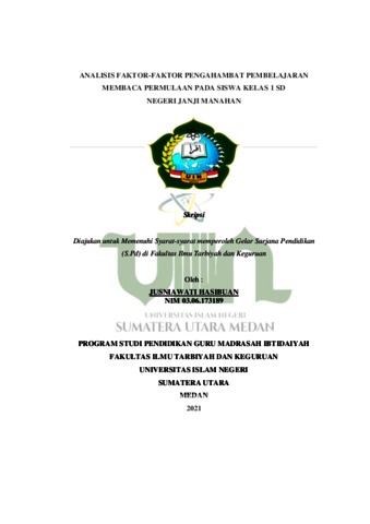 Hasibuan, Jusniawati (2021) Analisis Faktor-faktor Penghambat Pembelajaran Membaca Permulaan Pada Siswa Kelas I SD Negeri Janji Manahan. Skripsi thesis, Universitas islam negeri Sumatera Utara Medan.
