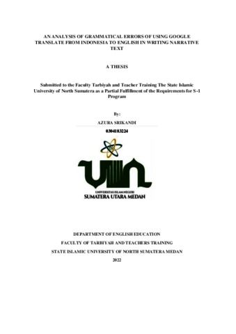 Srikandi, Azura (2022) An Analysis Of Grammatical Errors Of Using Google Translate From Indonesia To English In Writing Narrative Text. Skripsi thesis, Universitas Islam Negeri Sumatera Utara.
