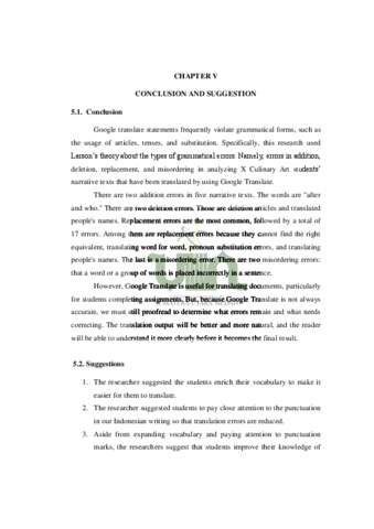 This study focuses on the grammatical errors made by Google Translate in translating narrative text from Indonesian to English. The narrative text is a text written by class X culinary arts students at SMK Tunas Karya. The research method used in conducting this research is qualitative with content analysis as the research design. It is also known as the document analysis method. It is intended that readers will be able to learn about the types of grammar errors that occur when using Google Translate and also the most common errors. This research discovered that there are two addition errors in five narrative texts. The words are "after and who." There are two deletion errors. Those are deletion articles and translated people's names. Replacement errors are the most common, followed by a total of 17 errors. Among them are replacement errors because they cannot find the right equivalent, translating word for word, pronoun substitution errors, and translating people's names. The last is a misordering error. There are two misordering errors: that a word or a group of words is placed incorrectly in a sentence. It is intended that once readers understand this, they will avoid making the same errors and enhance their grammar translation knowledge and skills.