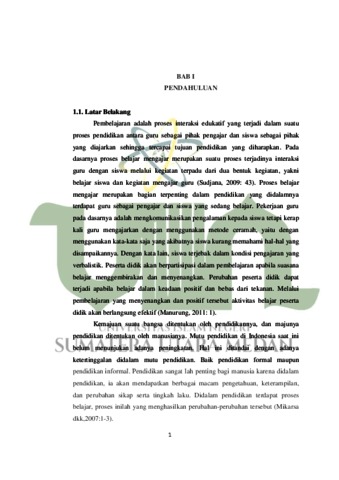 0,000<0,05. a 0 Kata kunci: model pembelajaran Contextual Teaching and Learning, hasil belajar ABSTRAK Penelitian yang telah dilakukan berjudul “Pengaruh Model Pembelajaran Contextual Teaching and Learning terhadap Hasil Belajar Siswa Pada Mata Pelajaran IPS” yang dilatarbelakangi bahwa hasil belajar siswa pada mata pelajaran Ilmu Pendidikan Sosial masih rendah dan kegiatan pembelajaran yang berlangsung di kelas masih menggunakan metode ceramah. Penelitian ini bertujuan untuk mengetahui: 1) hasil belajar siswa pada mata pelajaran IPS dengan menerapkan metode konvensional, 2) hasil belajar siswa pada mata pelajaran IPS dengan menerapkan model pembelajaran Contextual Teaching and Learning, 3) pengaruh penggunaan model pembelajaran Contextual Teaching and Learning terhadap hasil belajar siswa pada mata pelajaran IPS di kelas IV SDN 107403 Cinta Rakyat Kecamatan Percut Sei Tuan Kabupaten Deli Serdang. Metodologi yang digunakan dalam penelitian ini yaitu metode eksperimen dengan bentuk quasi experimental (eksperimen semu). Penelitian ini dilaksanakan di SDN 107403 Cinta Rakyat Kecamatan Percut Sei Tuan Kabupaten Deli Serdang. Adapun populasi dan sampel dalam penelitian ini adalah seluruh siswa kelas IV SDN 107403 Cinta Rakyat yang terdiri dari dua kelas yang berjumlah 43 siswa. Instrumen yang digunakan adalah tes pilihan berganda. Teknik analisis data yang digunakan dalam penelitian ini adalah uji Paired Sample T-test.Hasil dalam penelitian menunjukkkan bahwa (1) hasil belajar siswa pada mata pelajaran IPS yang diterapkan dengan metode konvensional diperoleh nilai rata-rata pada pre test sebesar 43,57 dan post test sebesar 77,38. (2) hasil belajar siswa pada mata pelajaran IPS yang diterapkan dengan model pembelajaran Contextual Teaching and Learning diperoleh nilai rata-rata pada pre test sebesar 45,68 dan post test sebesar 84,54. (3) terdapat pengaruh model pembelajaran Contextual Teaching and Learning terhadap hasil belajar siswa pada mata pelajaran IPS di kelas IV SDN 107403 Cinta Rakyat Kecamatan Percut Sei Tuan Kabupaten Deli Serdang. Hal ini dibuktikan dengan hasil uji Paired Sample T-test dengan nilai Sig. 0,000 sehingga H diterima dan H ditolak karena 0,000<0,05.