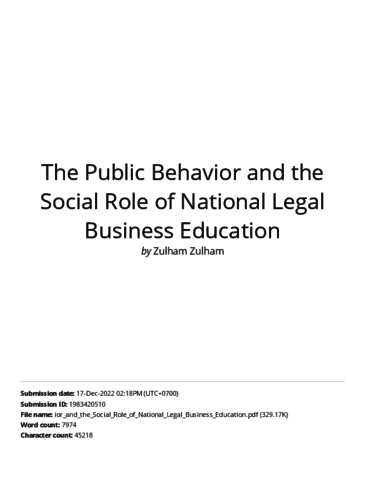 Zulham, Zulham (2022) Turnitin The Public Behavior And The Social Role Of National Legal Business Education. Journal Of Social Studies Education Research.