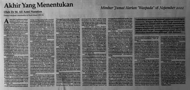 Nasution, M. Ali Azmi (2022) Akhir Yang Menentukan. Waspada. ISSN 0215-3017