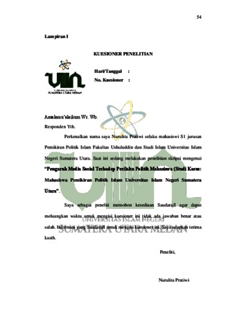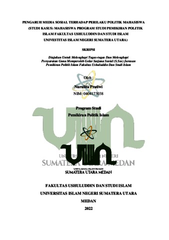 Pratiwi, Nurulita (2022) Pengaruh Media Sosial Terhadap Perilaku Politik Mahasiswa (Studi Kasus: Mahasiswa Program Studi Pemikiran Politik Islam Fakultas Ushuluddin dan Studi Islan Universitas Islam Negeri Sumatera Utara). Skripsi thesis, Universitas Islam Negeri Sumatera Utara.