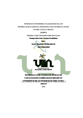 Ramadhani, Diah Pratiwi (2022) Penerapan Pendidikan Karakter dalam Pembelajaran Bahasa Indonesia Pada Kurikulum 2013 di MIN 12 Kota Medan. Skripsi thesis, Universitas Islam Negeri Sumatera Utara.