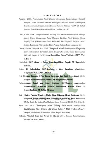 Uncontrolled Keywords: Model Talking Stick, Media Choose Number, Hasil Belajar