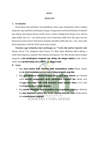 Syahputri, Eka (2022) Pengaruh Model Pembelajaran Kooperatif Tipe Talking Stick Dengan Bantuan Media Choose Number Terhadap Hasil Belajar Siswa di MTs. Al-Munawwarah. Skripsi thesis, Universitas Islam Negeri Sumatera Utara.