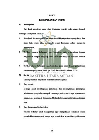 Khairiah, Anastasya (2022) Hubungan Pengetahuan dan Sikap Remaja Terhadap Pengelolaan Sampah di Kecamatan Medan Johor. Skripsi thesis, Universitas Islam Negeri Sumatera Utara.