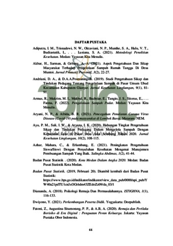 | Uncontrolled Keywords: | Pengetahuan, Sikap, Remaja, Pengelolaan Sampah |