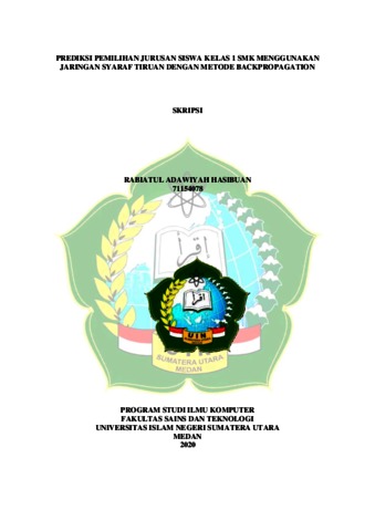 Hasibuan, Rabiatul Adawiyah (2020) Prediksi Pemilihan Jurusan Siswa Kelas 1 SMK Menggunakan Jaringan Syaraf Tiruan Dengan Metode Backpropagation. Skripsi thesis, Universitas Islam Negeri Sumatera Utara.