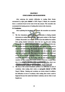 Difficulties in reading short stories is the problems faced by students in understanding reading short stories texts, and these problems can interfere with their learning, especially their reading skills. The purpose of this study was to describe the difficulties of students in reading short stories in class VIII MTs Negeri 2 Medan. The research methodology in this study uses a qualitative method where the data collected by the researcher is based on the results of interviews and also direct observation by the researcher. The participants of this study consisted of four students of class VIII-13 Mts Negeri 2 Medan. After the researcher analyzed the data, the researcher found that the students' difficulties in reading short stories were presented in four difficulties, namely: (1) Difficulties in the step of scanning, where students had poor reading strategies that students used in their attempts to complete the task; (2) Difficulty in finding specific words information, this happens because students do not understand the contents of the short story text; (3) Difficulties in understanding vocabulary, where students have limited vocabulary; (4) Students' interest in learning English, this happens because students think that English is a difficult subject. This can happen because students do not understand the whole content of the story.