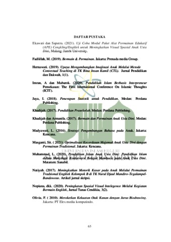 Uncontrolled Keywords: Pengaruh Permainan Engklek Terhadap Kecerdasan Visual Spasial Anak Usia Dini