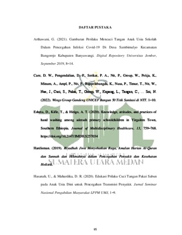 Yolanda, Rahayu (2022) Pengaruh Media Puzzle Terhadap Pengetahuan Anak Tentang Cuci Tangan Pakai Sabun Di Sd Negeri 21 Tanah Rendah. Skripsi thesis, Universitas Islam Negeri Sumatera Utara.