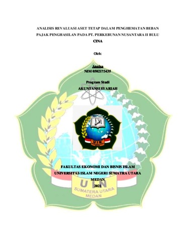 Annisa, Annisa (2021) Analisis Revaluasi Aset Tetap Dalam Penghematan Beban Pajak Penghasilan Pada Pt. Perkebunan Nusantara Ii Bulu Cina. Skripsi thesis, Universitas Islam Negeri Sumatera Utara.