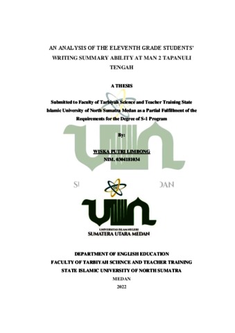 Limbong, Wiska Putri (2022) An Analysis Of The Eleventh Grade Students’ Writing Summary Ability At Man 2 Tapanuli. Skripsi thesis, Universitas Islam Negeri Sumatera Utara.