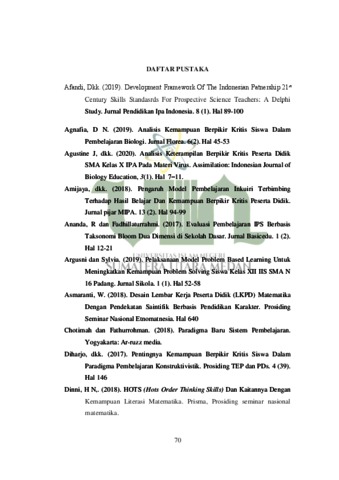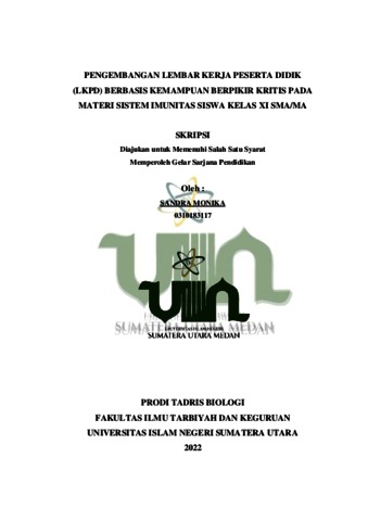 Monika, Sandra (2022) Pengembangan Lembar Kerja Peserta Didik (LKPD) Berbasis Kemampuan Berpikir Kritis Pada Materi Sistem Imunitas Kelas XI SMA/MA. Skripsi thesis, Universitas Islam Negeri Sumatera Utara.