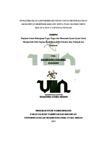Pasaribu, Khairumisa (2022) Pengembangan LKPD Berbasis Stem Untuk Meningkatkan Kemampuan Berpikir Kreatif Siswa Pada Materi Virus Kelas X MAN 2 Tapanuli Tengah. Skripsi thesis, Universitas Islam Negeri Sumatera Utara.