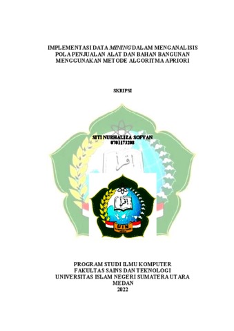 Sofyan, Siti Nurhaliza (2022) Implementasi Data Mining Dalam Menganalisis Pola Penjualan Alat Dan Bahan Bangunan Menggunakan Metode Algoritma Apriori. Skripsi thesis, Universitas Islam Negeri Sumatera Utara.