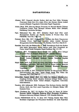 | Uncontrolled Keywords: | Ampas teh, Filter air, Karbon aktif, pH dan Mn. |