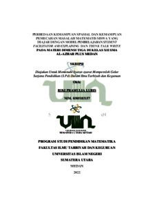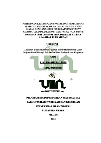 Lubis, Riki Pramulia (2022) Perbedaan Kemampuan Spasial dan Kemampuan Pemecahan Masalah Matematis Siswa Yang Diajar Dengan Model Pembelajaran Student Facilitator and Explaining dan Think Talk Write (TTW) Pada Materi Dimensi Tiga Di Kelas XII SMA Al-Azhar Plus Medan. Skripsi thesis, Universitas Islam Negeri Sumatera Utara.