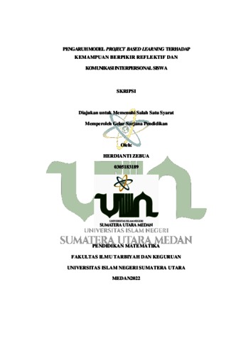 Zebua, Herdianti (2022) Pengaruh Model Project Based Learning Terhadap Kemampuan Berpikir Reflektif Dan Komunikasi Interpersonal Siswa. Skripsi thesis, Universitas Islam Negeri Sumatera Utara.