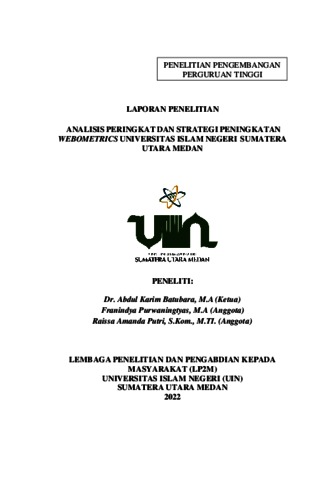 Batubara, Abdul Karim and Purwaningtyas, Franindya and Putri, Raissa Amanda (2022) Analisis Peringkat Dan Strategi Peningkatan Webometrics Universitas Islam Negeri Sumatera Utara Medan. LP2M UIN Sumatera Utara Medan.