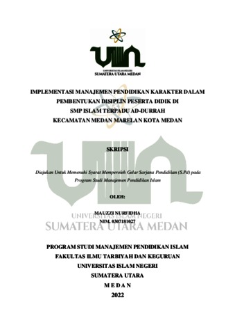 Nurfidha, Mauzzi (2022) Implementasi Manajemen Pendidikan Karakter Dalam Pembentukan Disiplin Peserta Didik di SMP Islam Terpadu Ad-Durrah Kecamatan Medan Marelan. Skripsi thesis, Universitas Islam Negeri Sumatera Utara.