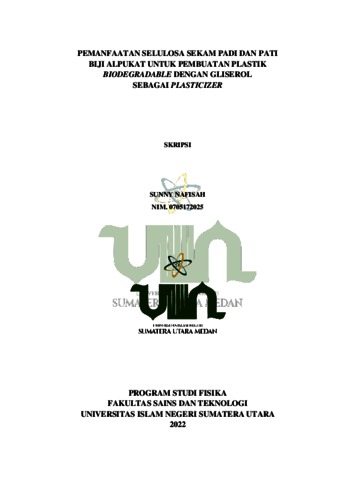 Nafisah, Sunny (2022) Pemanfaatan Selulosa Sekam Padi Dan Pati Biji Alpukat Untuk Pembuatan Plastik Biodegradable Dengan Gliserol Sebagai Plasticizer. Skripsi thesis, Universitas Islam Negeri Sumatera Utara.