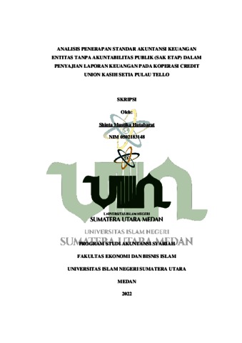 Hutabarat, Shinta Mustika (2022) Analisis Penerapan Standar Akuntansi Keuangan Entitas Tanpa Akuntabilitas Publik (SAK ETAP) Dalam Penyajian Laporan Keuangan Pada Koperasi Credit Union Kasih Setia Pulau Tello. Skripsi thesis, Universitas Islam Negeri Sumatera Utara.