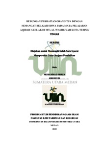 Hubungan Perhatian Orang Tua dengan Semangat Belajar Siswa Pada Mata Pelajaran Aqidah Akhlak di MTs Al-Washliyah Kota Tebing Tinggi
