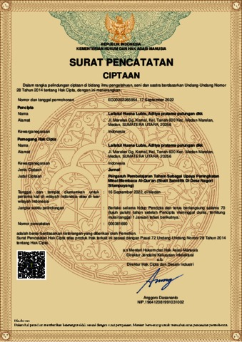 Lubis, Lailatul Husna and Pulungan, Aditya Pratama (2022) HAKI Pengaruh Pembelajaran Tahsin Sebagai Upaya Peningkatan Minat Membaca Al-Qur'an (Studi Saintifik Di Desa Nagori Silampuyang). UIN Sumatera Utara Medan.