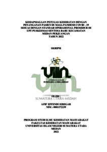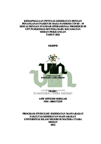 Siregar, Afif Effendi (2022) Kesiapsiagaan Petugas Kesehatan Dengan Penanganan Pasien Di Masa Pandemi Covid - 19 Sesuai Dengan Standar Operasional Prosedur Di Upt Puskesmas Sentosa Baru Kecamatan Medan Perjuangan Tahun 2022. Skripsi thesis, Universitas Islam Negeri Sumatera Utara.