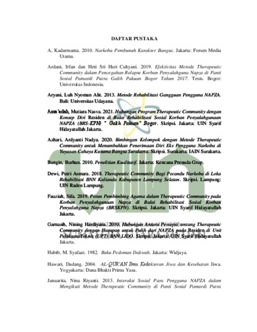 Lestari, Diah Ayu (2021) Implementasi Metode Therapeutic Community (Tc) Dalam Pemulihan Korban Penyalahguna Narkoba Di Yayasan Sungai Yordan Kasih Kabupaten Simalungun. Skripsi thesis, Universitas Islam Negeri Sumatera Utara.