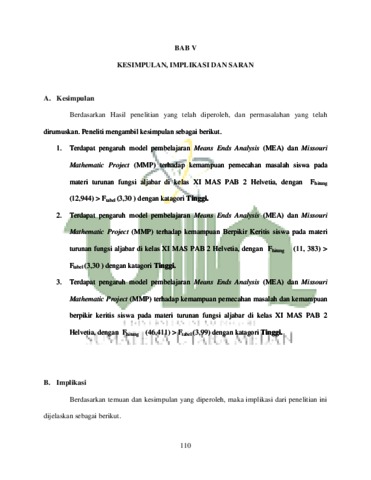 Silvi, Meutia (2021) Pengaruh Model Pembelajaran Means Ends Analysis dan Model Pembelajaran Missouri Mathematic Project terhadap kemampuan pemecahan masalah dan kemampuan berpikir kritis di kelas XI MAS PAB 2 Helvetia T.P 2020/2021”. Skripsi thesis, Universitas Islam Negeri Sumatera Utara.