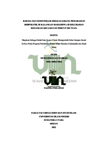 Farhan, Muhammad Ali (2022) Bahasa dan komunikasi sebagai sarana pemahaman politik di kelurahan kenangan Kecamatan Percut Sei Tuan. Skripsi thesis, Universitas Islam Negeri Sumatera Utara.
