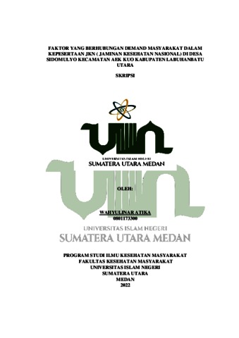 Atika, Wahyulinar (2022) Faktor Yang Berhubungan Demand Masyarakat Dalam Kepesertaan JKN ( Jaminan Kesehatan Nasional) Di Desa Sidomulyo Kecamatan Aek Kuo Kabupaten Labuhanbatu Utara. Skripsi thesis, Universitas Islam Negeri Sumatera Utara.