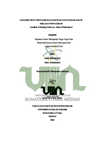Abdurrahman, Abdurrahman (2022) Analisis Swot Penyampaian Dakwah Ustaz Felix Siauw Melalui Instagram (Analisis Terhadap Followers Akun @Felixsiauw). Skripsi thesis, Universitas Islam Negeri Sumatera Utara.