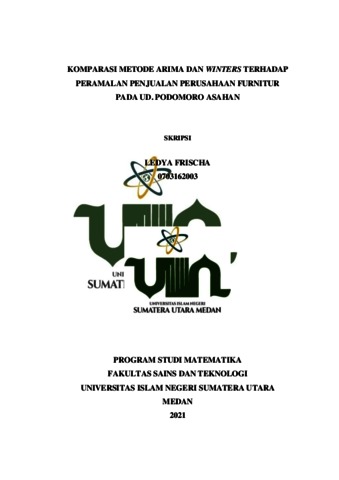 Frischa, Ledya (2021) Komparasi Metode Arima Dan Winters Terhadap Peramalan Penjualan Perusahaan Furnitur Pada Ud. Podomoro Asahan. Skripsi thesis, Universitas Islam Negeri Sumatera Utara.