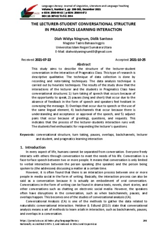 The Lecturer-Student Conversational Structure In Pragmatics Learning Interaction
