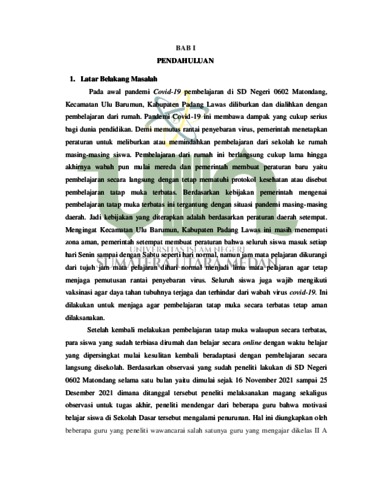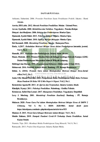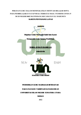 Hasibuan, Wirda Juniati (2022) Peranan Guru Dalam Meningkatkan Motivasi Belajar Siswa Pada Pembelajaran Tatap Muka Terbatas Masa Pandemi Covid-19 di SD Negeri 0602 Matondang Kecamatan Ulu Barumun Kabupaten Padang Lawas. Skripsi thesis, Universitas Islam Negeri Sumatera Utara.