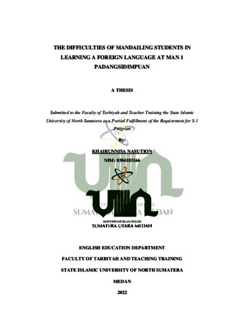 NASUTION, KHAIRUNNISA (2022) The Difficulties Of Mandailing Students In Learning A Foreign Language At Man 1 Padangsidimpuan. Skripsi thesis, Universitas Islam Negeri Sumatra Utara.