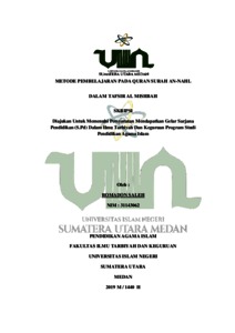 Saleh, Romadon (2019) Metode Pembelajaran Pada Quran Surah An-Nahl Dalam Tafsir Al Mishbah. Skripsi thesis, Universitas Islam Negeri Sumatera Utara.