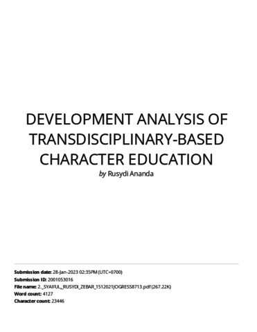 Hasil Turnitin-DEVELOPMENT ANALYSIS OF TRANSDISCIPLINARY-BASED CHARACTER EDUCATION.pdf Download (1MB) | Preview |