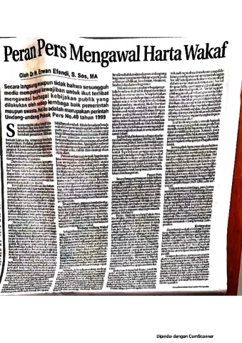 Efendi, Erwan (2023) Peran Pers Mengawal Harta Wakaf. Waspada. ISSN 0215-3017
