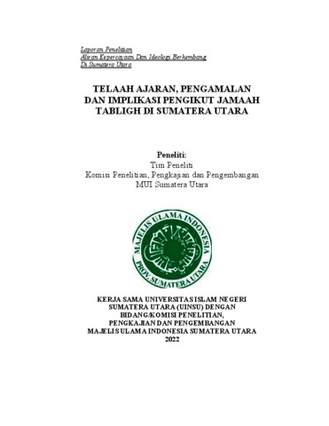 Azmi, Fachruddin and Syam, Syafruddin and Sulidar, Sulidar and Mardianto, Mardianto and Damanik, Agusman TELAAH AJARAN, PENGAMALAN DAN IMPLIKASI PENGIKUT JAMAAH TABLIGH DI SUMATERA UTARA. UIN Sumatera Utara Medan, Indonesia. (Submitted)