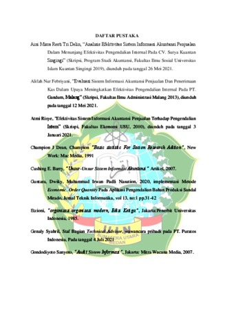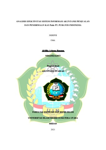 Bangun, Afrillia Arizona (2021) Analisis Efektivitas Sistem Informasi Akuntansi Penjualan Dan Penerimaan Kas Pada Pt. Puratos Indonesia. Skripsi thesis, Universitas Islam Negeri Sumatera Utara.