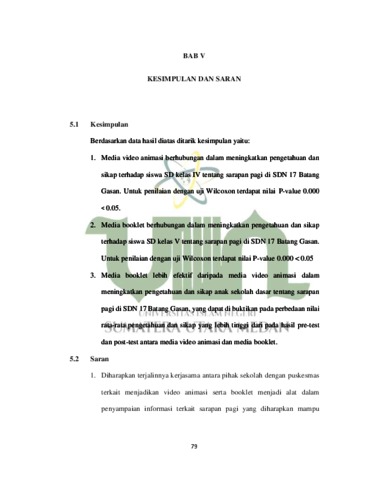 Efektifitas Video Animasi Dan Booklet Terhadap Pengetahuan Dan Sikap Tentang Sarapan Pagi Di Wilayah Pesisir Batang Gasan Kabupaten Padang Pariaman