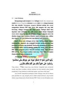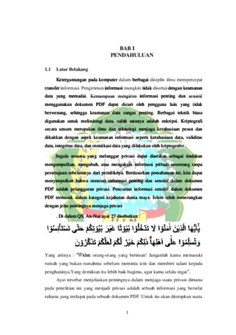 Ketergantungan pada komputer di berbagai bidang membuat transfer informasi menjadi lebih cepat. Perpindahan informasi terkadang tidak dibarengi dengan keamanan data yang memadai. Keamanan data sangat penting karena kemungkinan pengiriman informasi rahasia melalui penggunaan sebuah dokumen PDF dapat dicuri oleh oknum yang tidak bertanggung jawab semakin beresiko besar. Kriptografi merupakan salah satu teknik mengamankan data yang dapat digunakan. ilmu dan seni menjaga kerahasiaan berita yang mempelajari teknik matematis yang berkaitan dengan aspek keamanan informasi seperti kerahasiaan data, validitas data, integritas data, dan otentikasi data merupakan pemahaman umum tentang kriptografi yang dilakukan oleh seorang kriptografer. Penelitian ini bertujuan untuk menghasilkan sebuah aplikasi yang dapat digunakan untuk mengamankan dokumen PDF sehingga tidak dapat diketahui informasi di dalamnya oleh pihak yang tidak berkepentingan. Dalam proses pengamanannya pada penelitian ini akan digunakan algoritma Vernam. Pada proses pengerjaannya karakter diubah ke dalam bentuk biner untuk selanjutnya dilakukan perhitungan nilai bit (0 atau 1) antara pesan dan kunci.