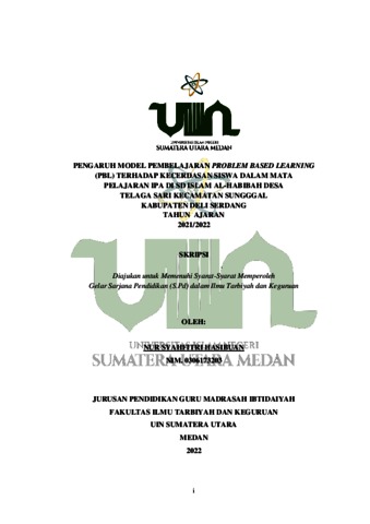 Hasibuan, Nur Syahfitri (2022) Pengaruh Model Pembelajaran Problem Based Learning (PBL) Terhadap Kecerdasan Siswa Dalam Mata Pelajaran IPA di SD Islam Al-Habibah Desa Telaga Sari Kecamatan Sunggal Kabupaten Deli Serdang Tahun Ajaran 2021/2022. Skripsi thesis, Universitas Islam Negeri Sumatera Utara.