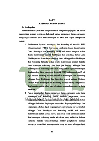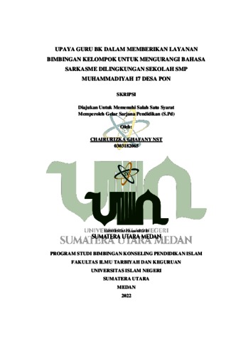 Nst, Chairurizka Ghafany (2022) Upaya Guru BK Dalam Memberikan Layanan Bimbingan Kelompok Untuk Mengurangi Bahasa Sarkasme Dilingkungan Sekolah SMP Muhammadiyah 17 Desa Pon. Skripsi thesis, Universitas Islam Negeri Sumatera Utara.