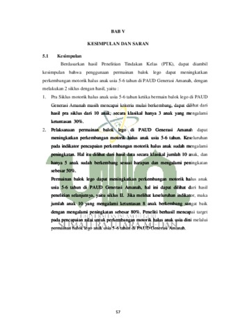 Uncontrolled Keywords: Perkembangan Motorik Halus, Permainan Balok Lego